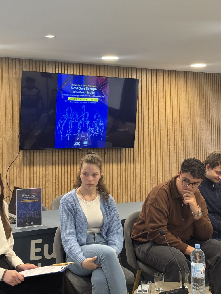 Pored studentkinje iz Srbije, u diskusiji su učestvovali i studenti iz Crne Gore, Španije i Turske, koji se trenutno nalaze na razmeni u Crnoj Gori. Njihova iskustva dodatno su obogatila razgovor i pružila širu perspektivu o mogućnostima koje programi mobilnosti nude mladima širom Evrope.